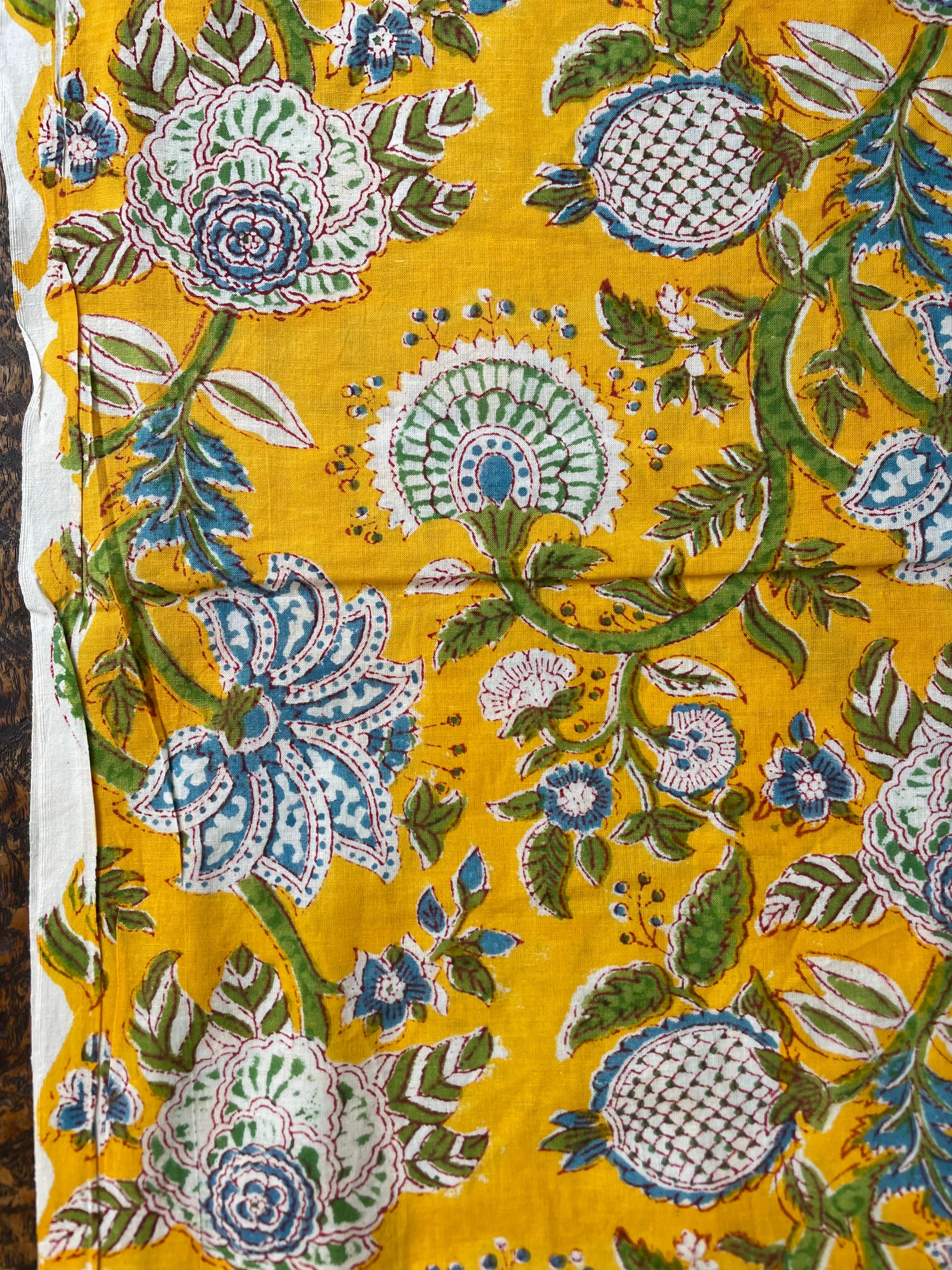 【NEW】Block print 黄色地に植物の模様