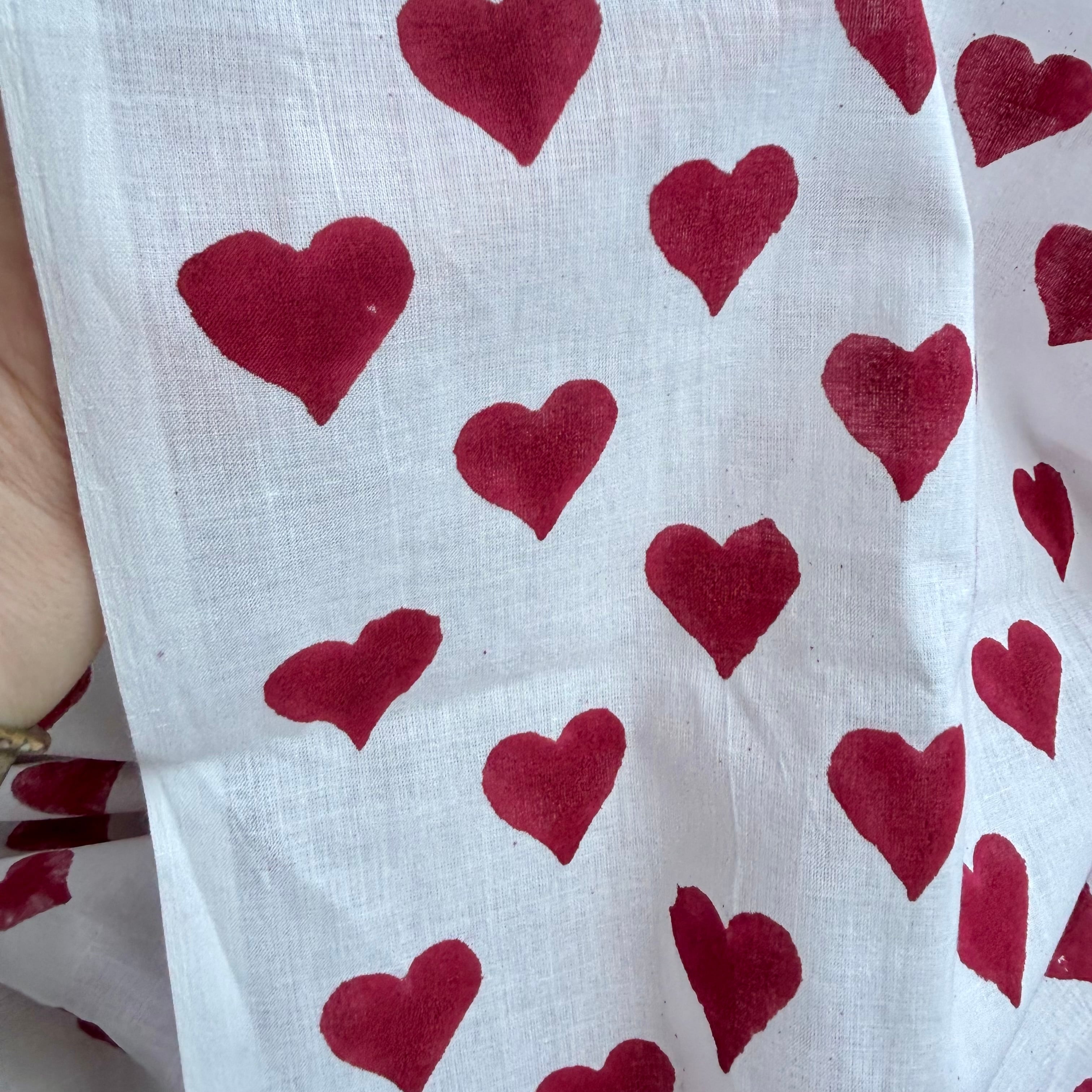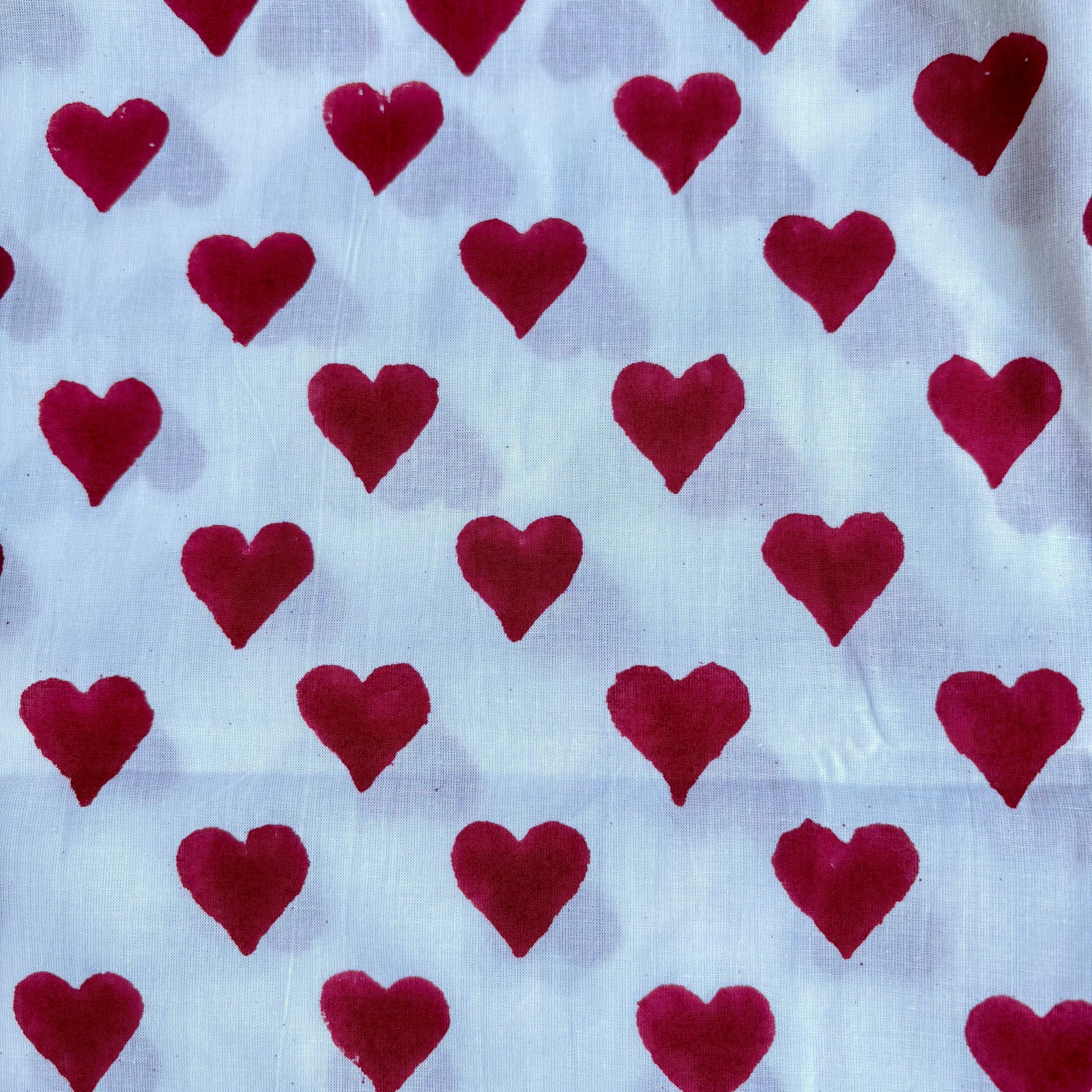 職人さんの手で彫られた木版を使って、ハンドプリントで作られています。色により違う木版を使い、色の数だけ重ねてゆきます。版と版のつながりに、ズレや重なりが生じますが、ブロックプリントの特徴であり、魅力でもあります。