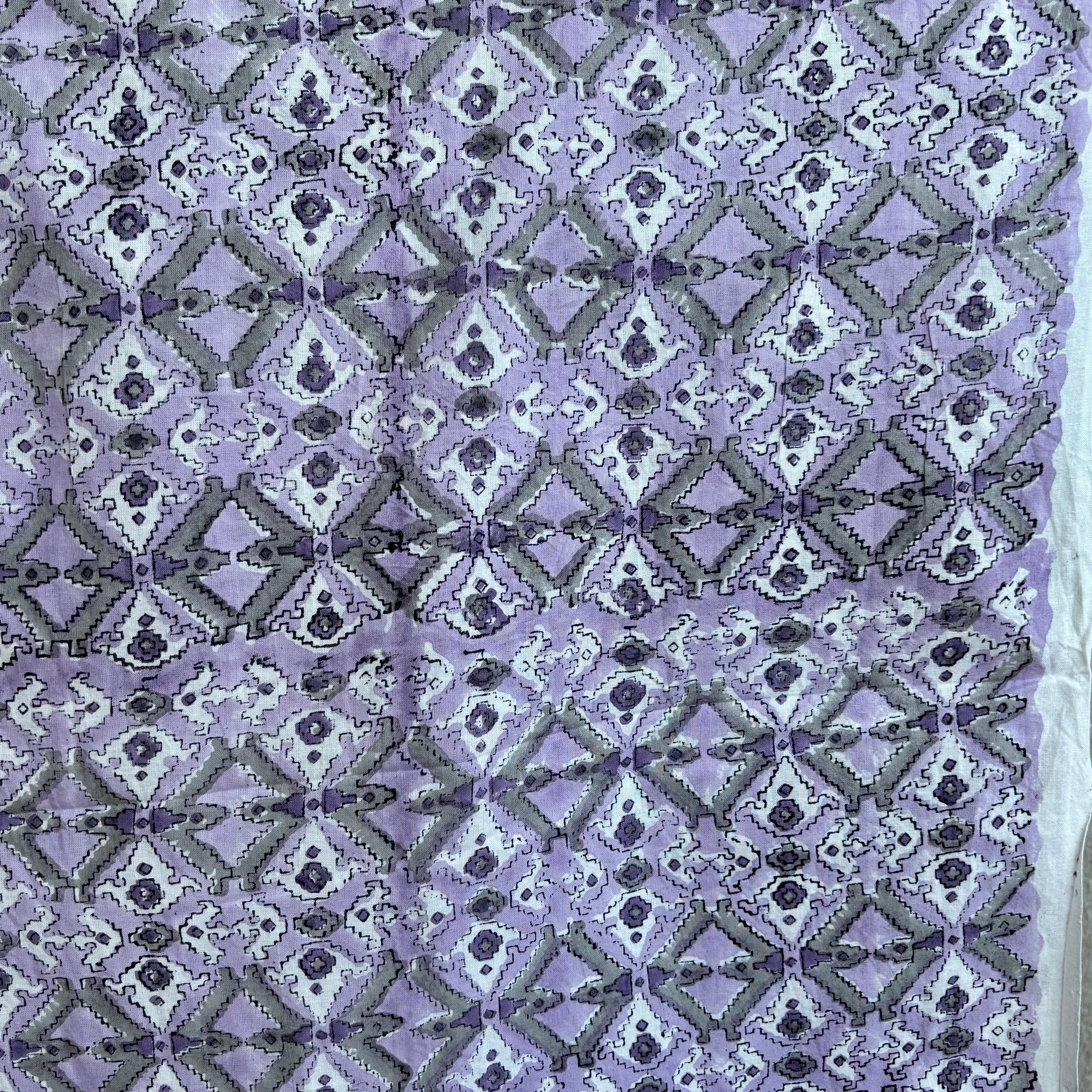 職人さんの手で彫られた木版を使って、ハンドプリントで作られています。色により違う木版を使い、色の数だけ重ねてゆきます。版と版のつながりに、ズレや重なりが生じますが、ブロックプリントの特徴であり、魅力でもあります。