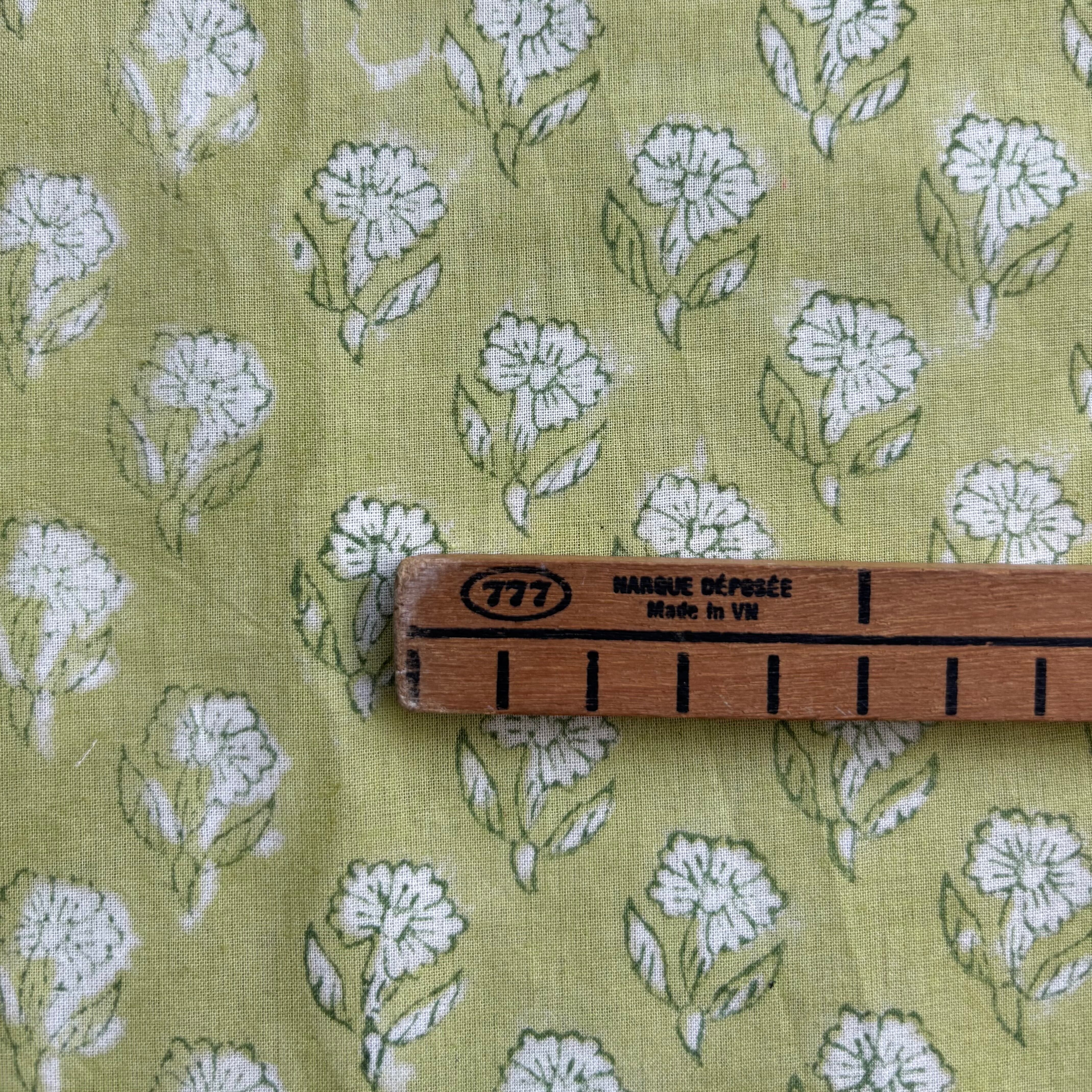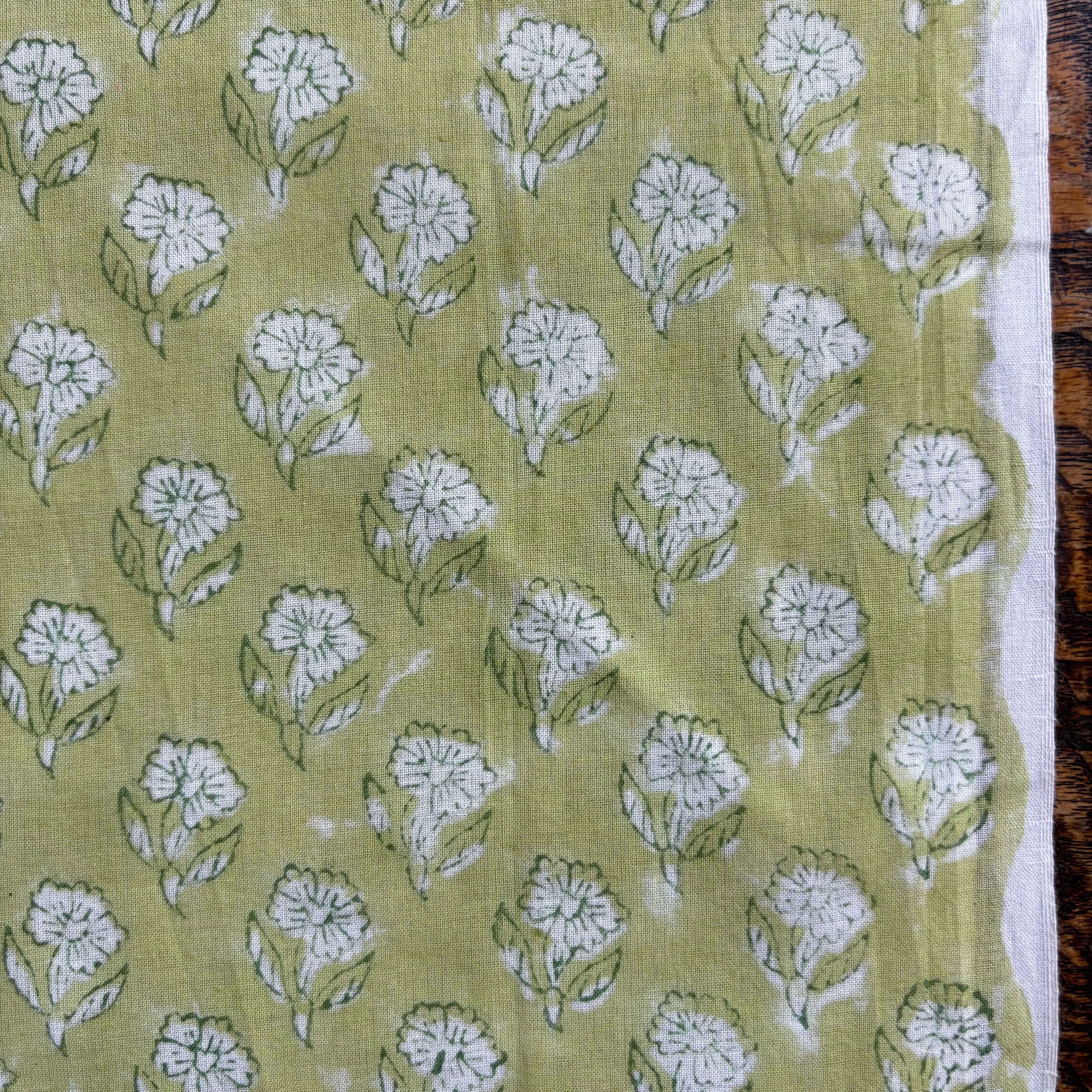 職人さんの手で彫られた木版を使って、ハンドプリントで作られています。色により違う木版を使い、色の数だけ重ねてゆきます。版と版のつながりに、ズレや重なりが生じますが、ブロックプリントの特徴であり、魅力でもあります。