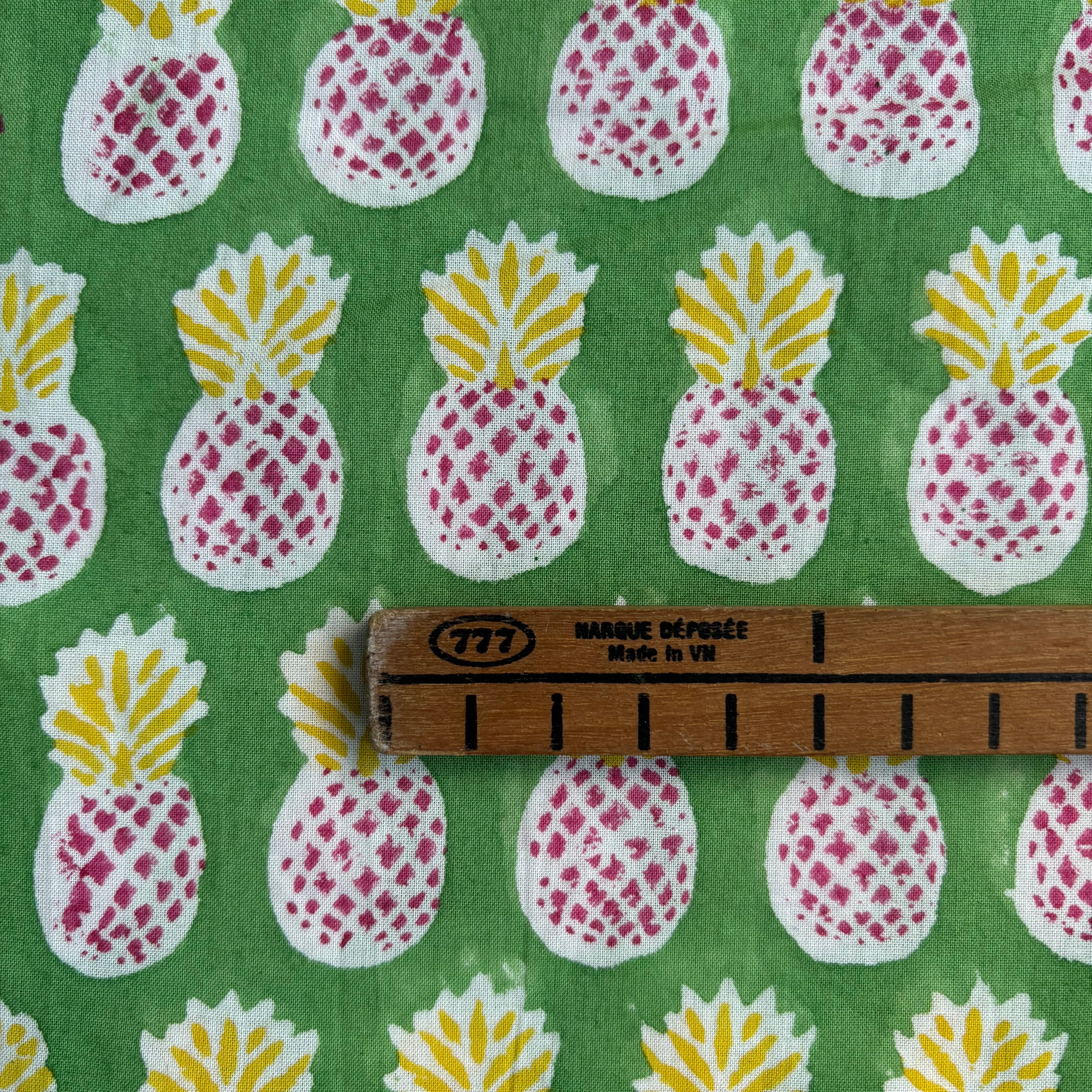 職人さんの手で彫られた木版を使って、ハンドプリントで作られています。色により違う木版を使い、色の数だけ重ねてゆきます。版と版のつながりに、ズレや重なりが生じますが、ブロックプリントの特徴であり、魅力でもあります。