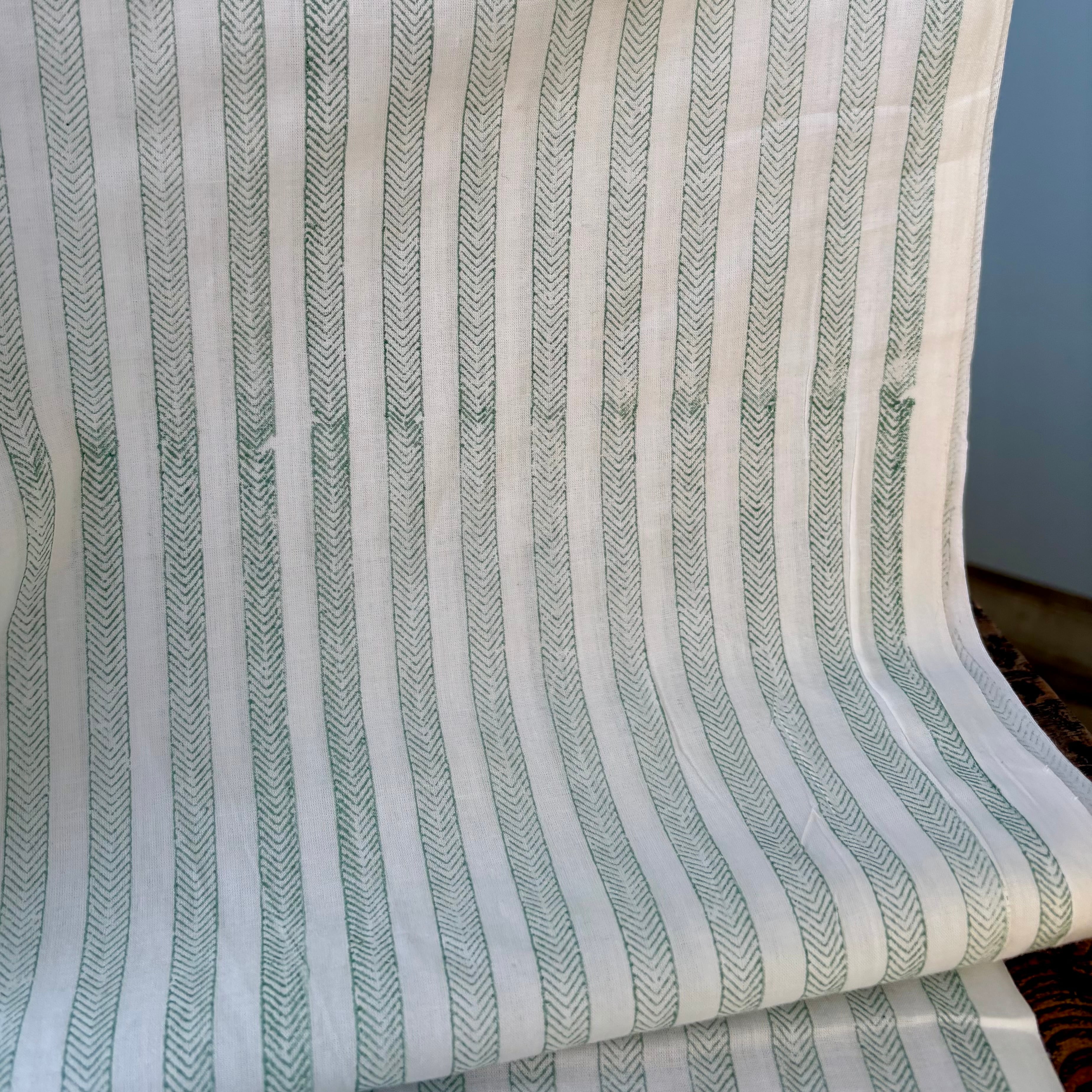 【NEW】Block print 白地にヘンリボーン模様のしましま