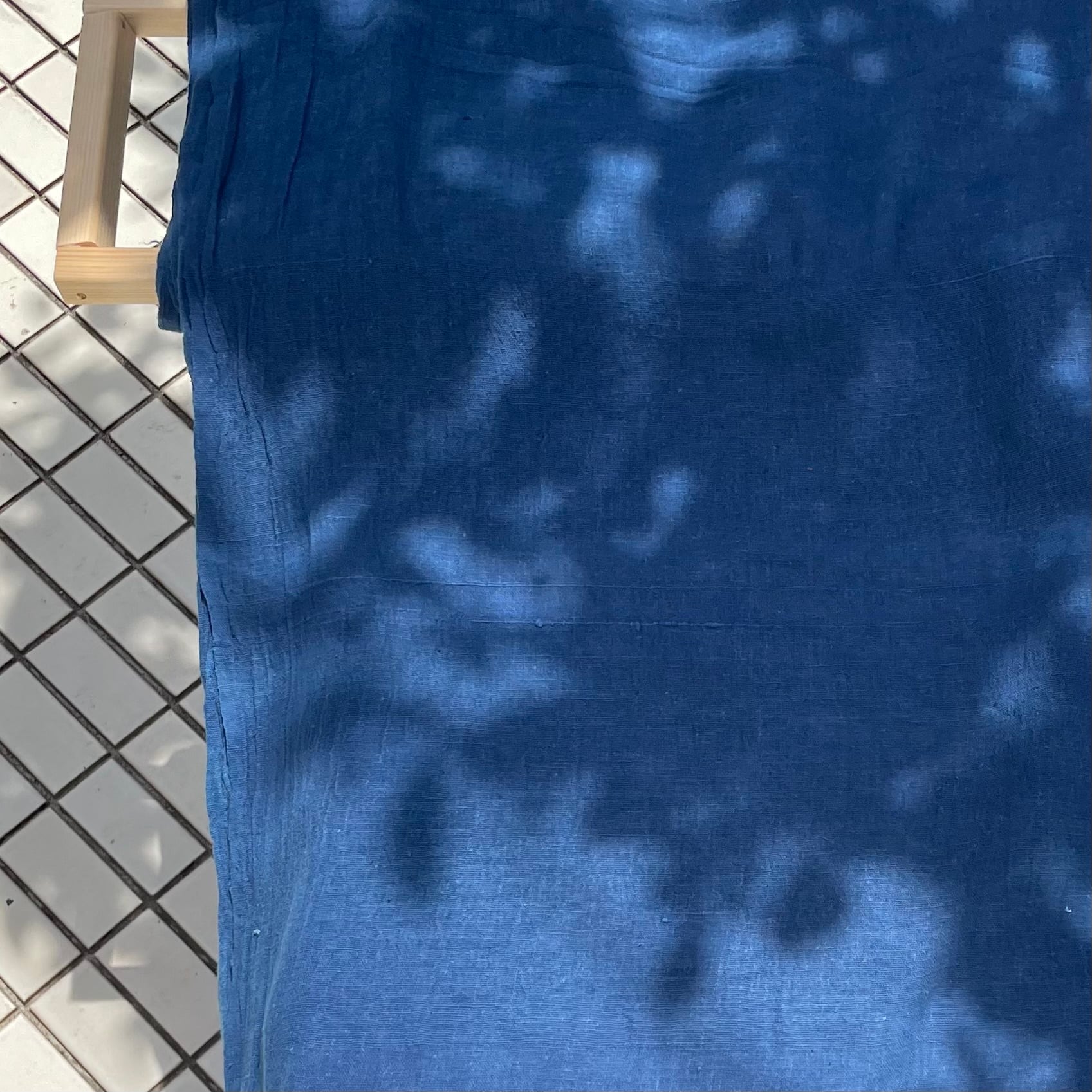 インディゴ染めです。洗濯時は単独で手洗いをおすすめします。