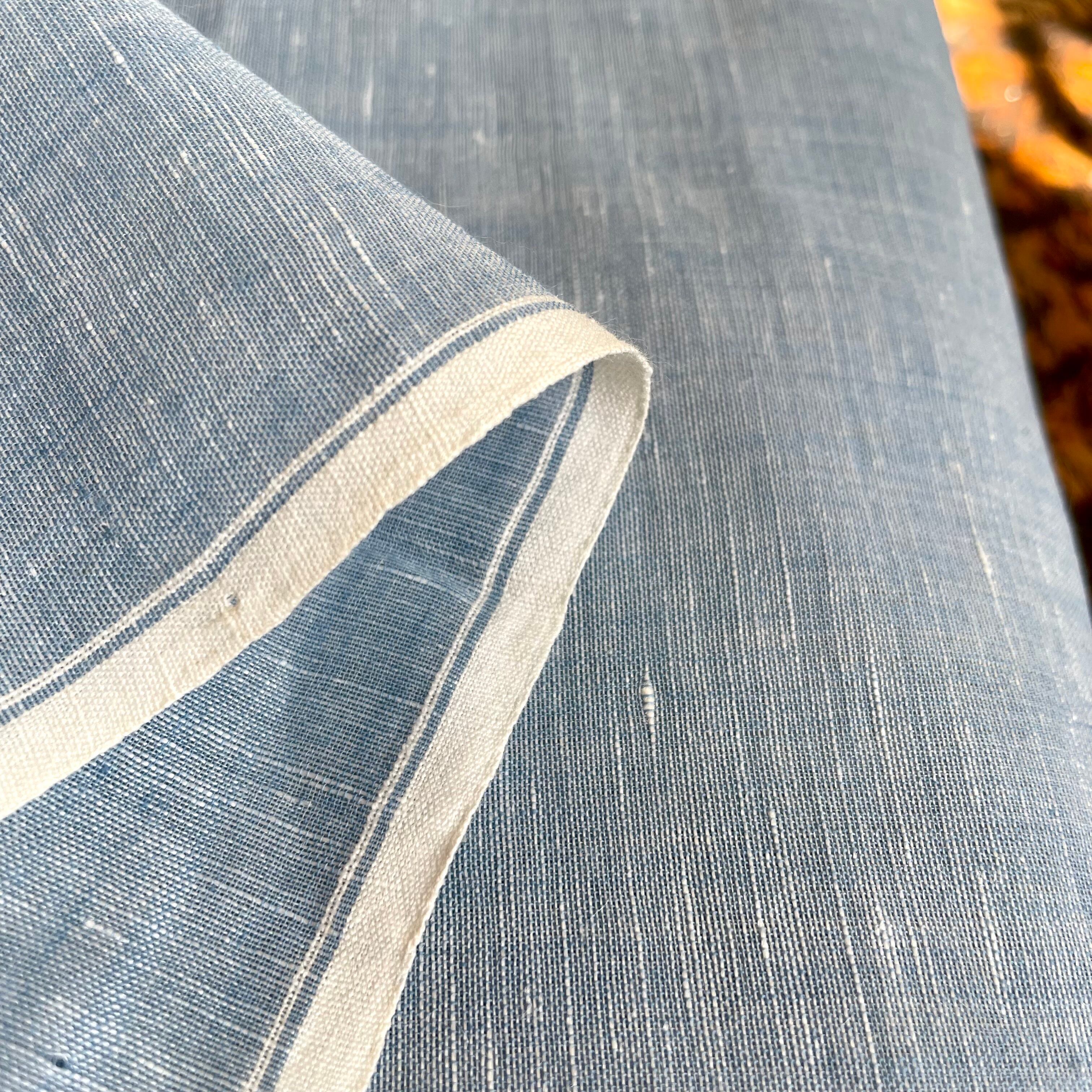 透け感は少なく、端のライン活用してブラウスにすると涼しげ素敵です。切りっぱなしストールにもいいですね。