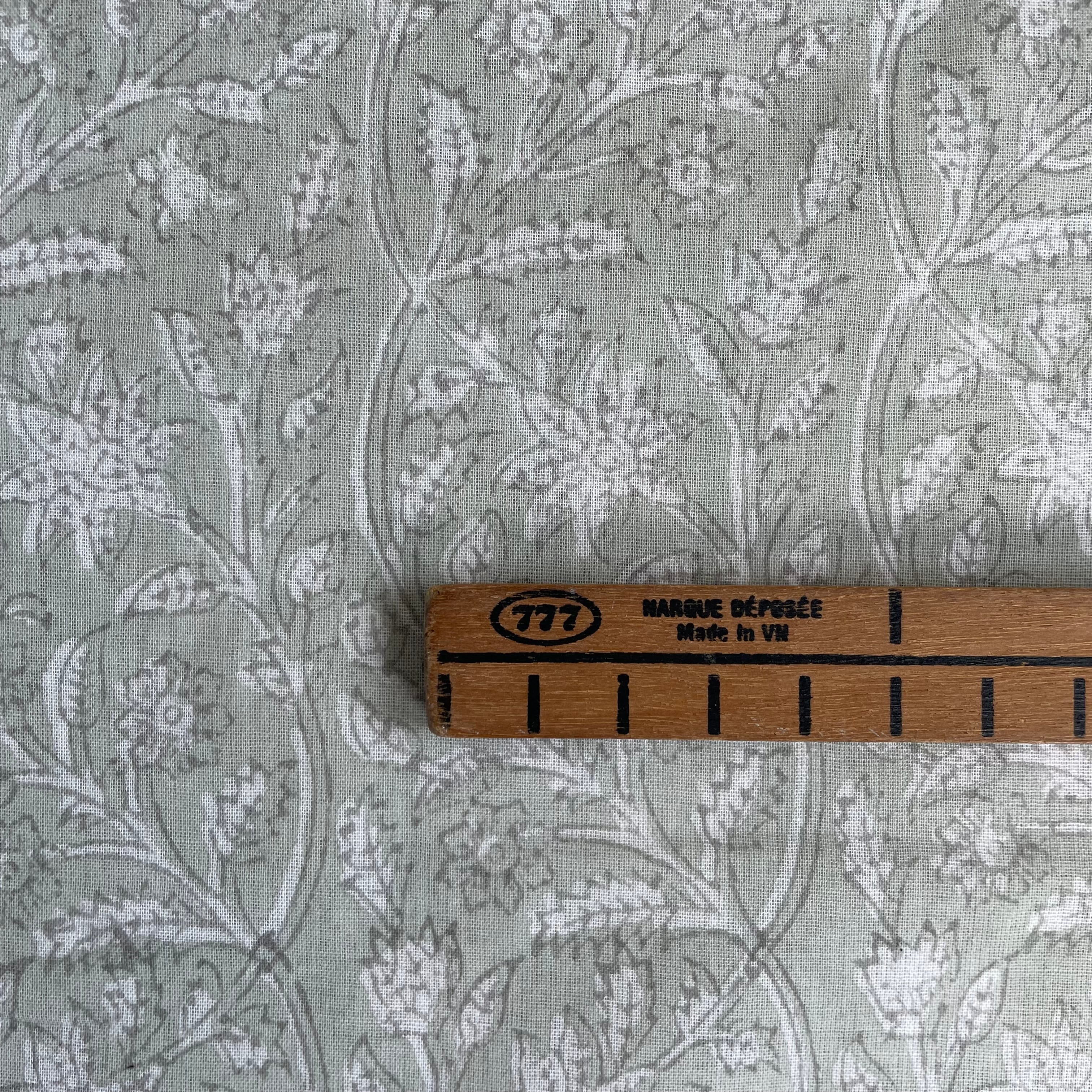 職人さんの手で彫られた木版を使って、ハンドプリントで作られています。色により違う木版を使い、色の数だけ重ねてゆきます。版と版のつながりに、ズレや重なりが生じますが、ブロックプリントの特徴であり、魅力でもあります。